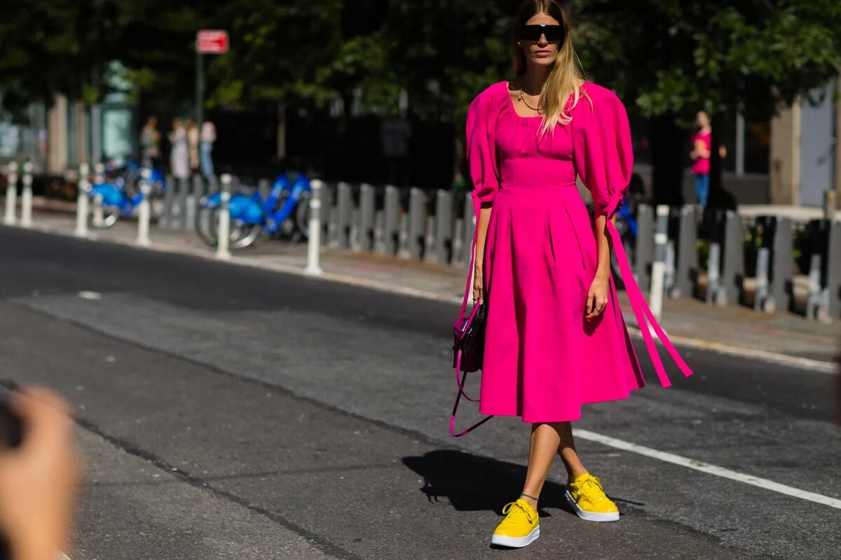 Gli abiti romantici non possono mancare in questa stagione. Dopotutto, essendo vaporosi e ricchi di volant, sono considerati un capo iconico delle giornate calde per passeggiare in città. Per raggiungere questo obiettivo, serve una scarpa con cui si possa camminare comodamente, il che ci porta alle sneakers. Quelle in rosa mantengono l’estetica femminile.