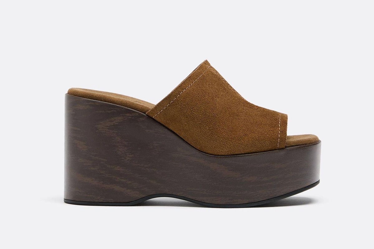 È qui che si inseriscono le zeppe aperte in pelle con piattaforma che Stradivarius vende ora a 39,99 euro. Il modello, con finitura marrone e design aperto, si colloca in una via di mezzo che continua ad avere senso quando arriva la bella stagione: non ha l’aria marcatamente da spiaggia dell’espadrilla classica, ma nemmeno la rigidità di una scarpa troppo formale. È proprio questa posizione più moderata a renderla utile.