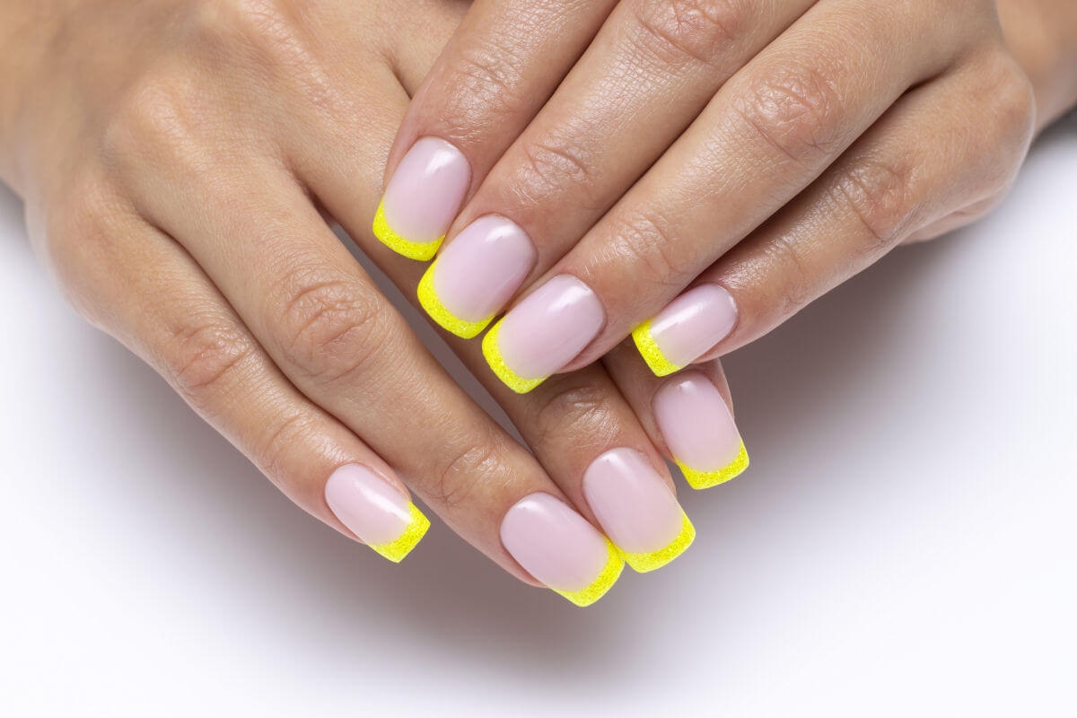 Se vuoi dare un tocco stagionale e molto azzeccato alla tua manicure francese, puoi optare per colori pastello al posto della classica linea bianca sulle punte. Queste tonalità tenui conferiscono un’aria fresca, delicata e attuale. Puoi scegliere un unico colore pastello per tutta la manicure o, se preferisci qualcosa di più divertente e accattivante, usare una tonalità diversa su ogni unghia. Il risultato è un disegno colorato e molto allegro.