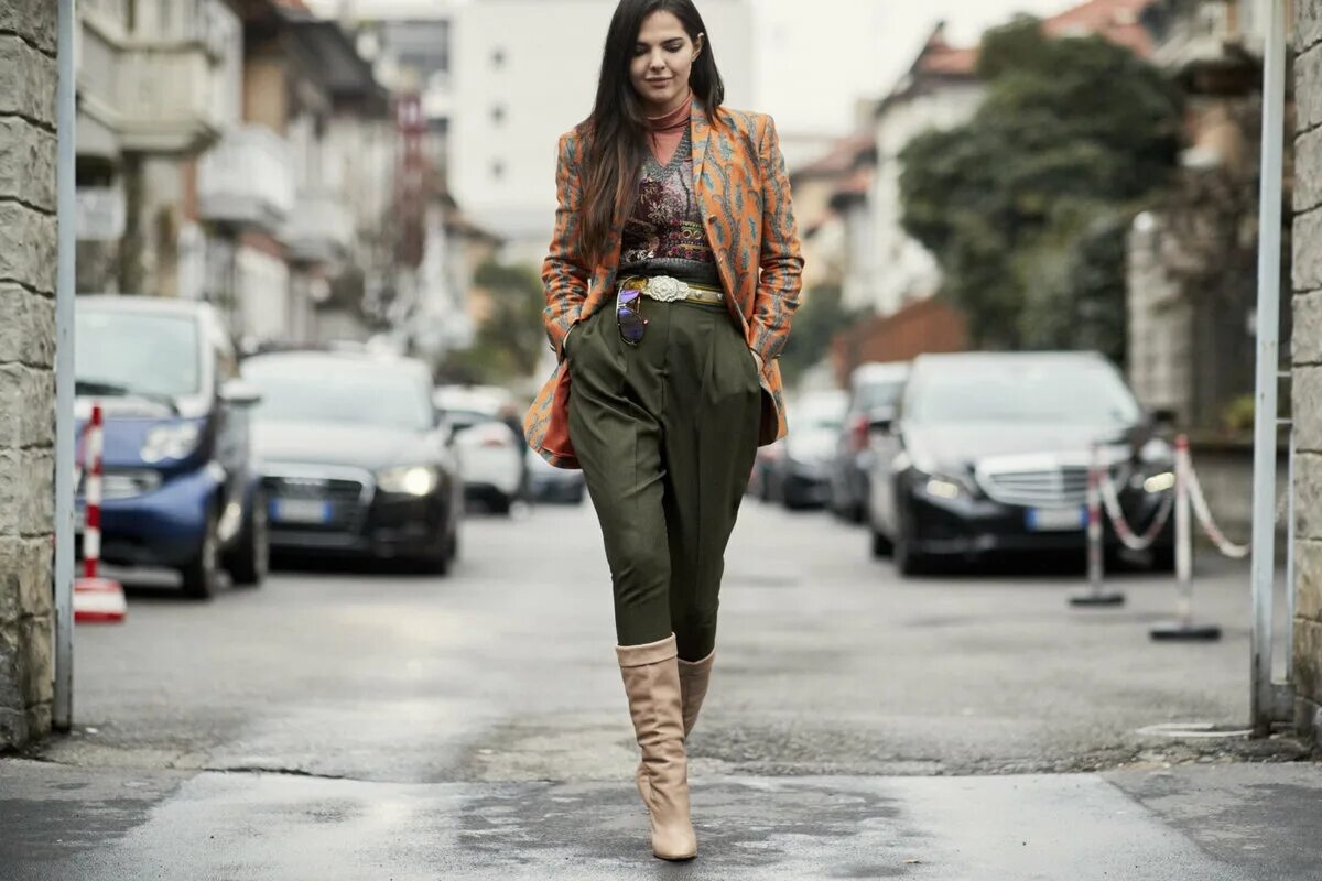 Un’altra interpretazione chiave si basa sulla sovrapposizione di tonalità simili. Abbinare diverse sfumature di verde, dall’oliva ai toni più profondi, genera un effetto visivo ricco e coerente. Giacche leggere, camicie ampie o capi di ispirazione utilitaristica completano un insieme che evoca la funzionalità senza rinunciare allo stile.